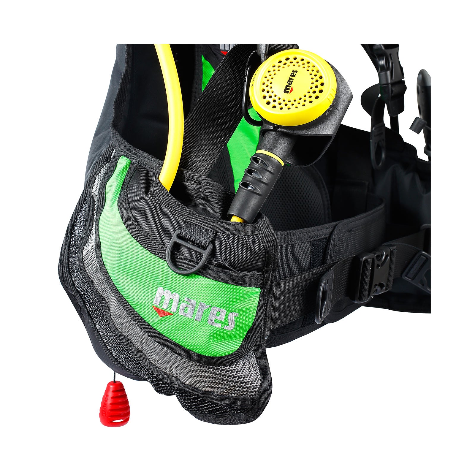 To make diving more comfortable for young divers, two handy rear weight pockets can be purchased separately to attach to the tank strap.