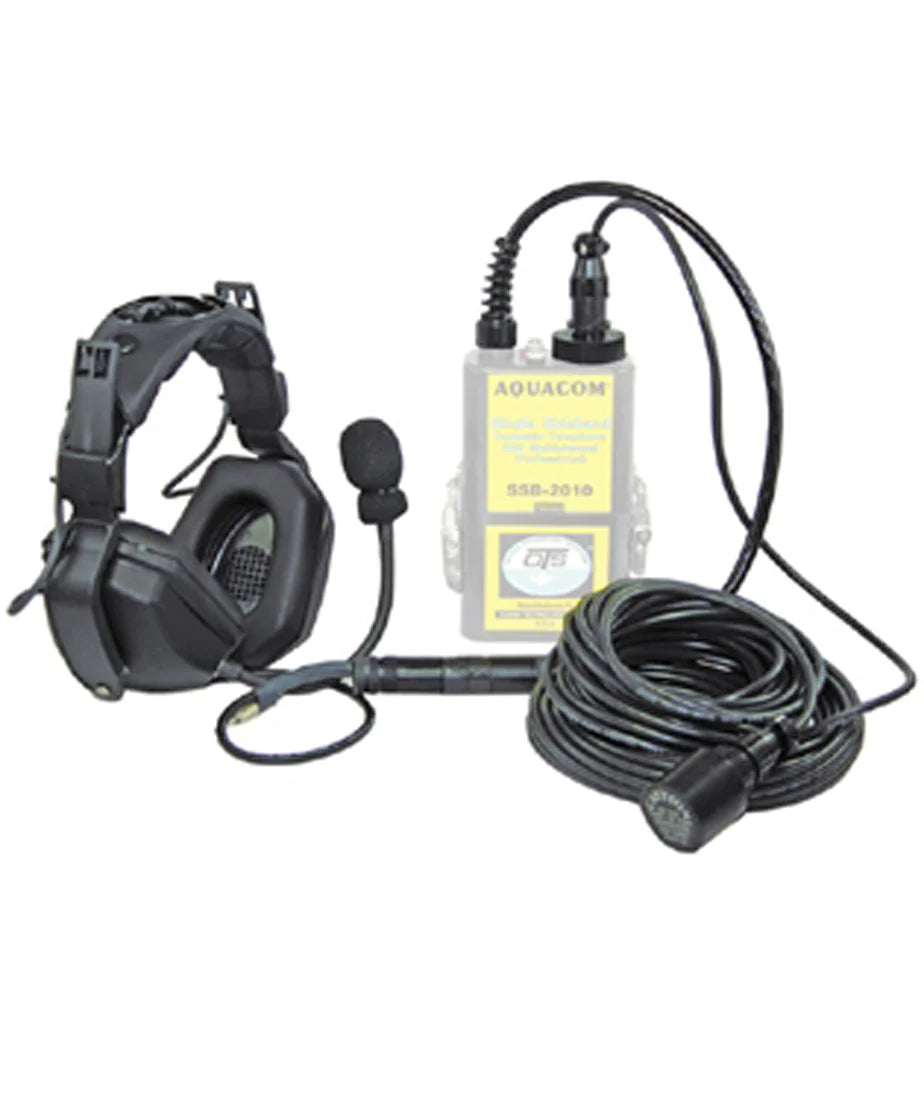 The Kit consists of a deluxe headset with boom microphone (THB-13) with a built in Push-to-talk (PTT) control, and a 55′ transducer cable (TC-35S) including connectors. Once installation has been completed, you may control the dive unit via the PTT control and may modify your settings for VOX/PTT mode, squelch, earphone volume, and channel.