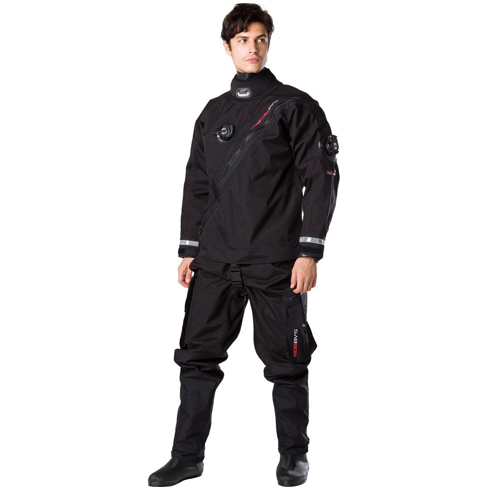 The Tech Shell Aqua drysuit is the perfect all around drysuit. Easy entry front zipper, Cordura 500 nylon material.