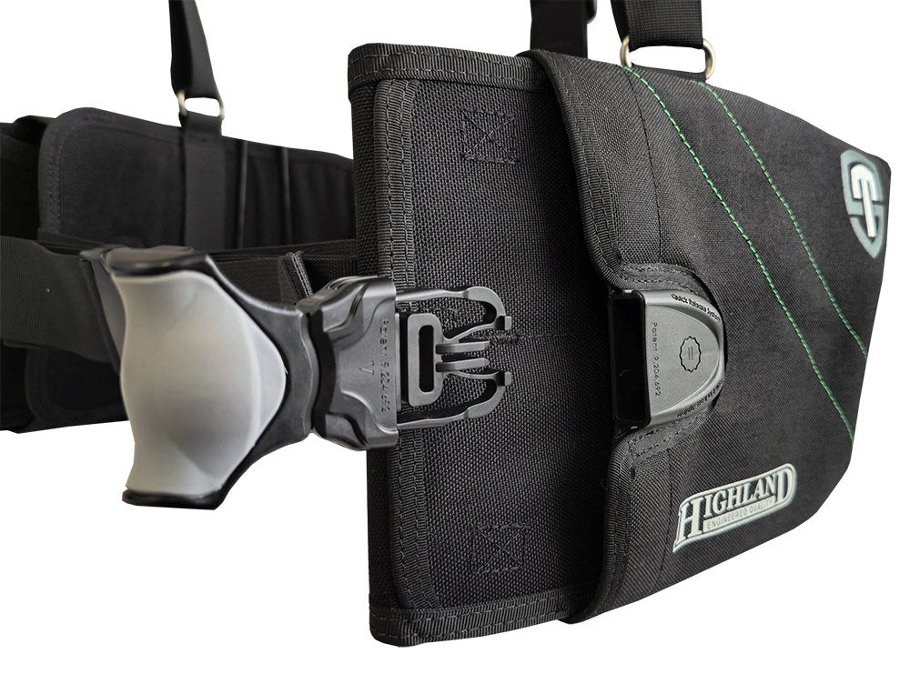 Optional HL250 weight plates can be mounted on shoulder straps for additional trimming opportunities