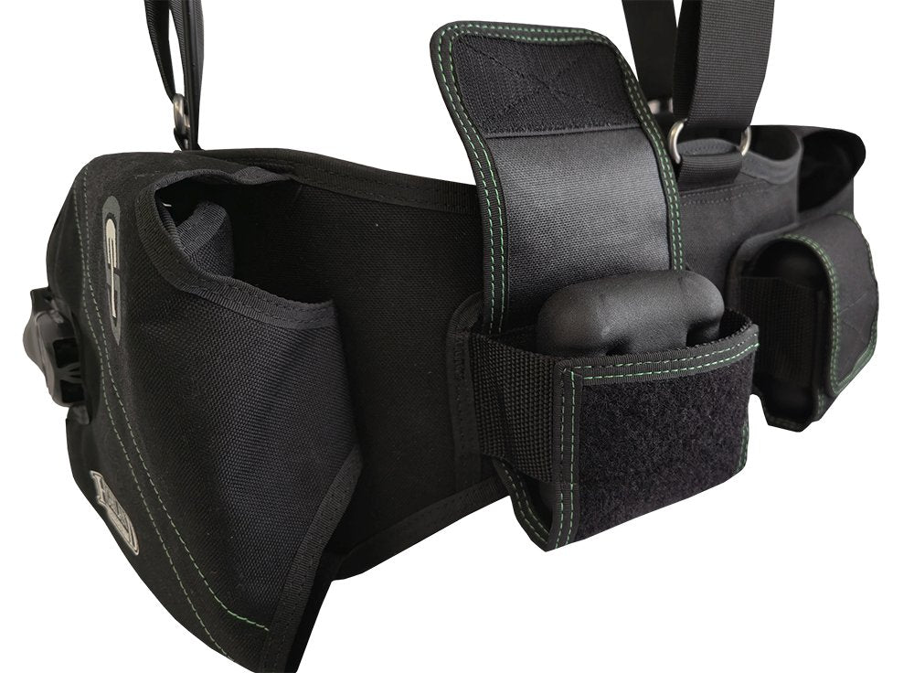 The yoke and waist sections of the harness are built with high-density polyethylene (HDPE) to better distribute the load and eliminate pressure points