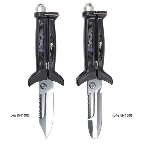 This ingenious knife is actually three tools in one. Not only is it an effective, sharp knife, it also has sharp scissors and a serrated pipe grip integrated into it. The scissors are very effective for cutting monofilament, loose threads on wetsuits, excess webbing on harnesses and belts, just to name a few. The pipe grip can twist a stubborn nut or bolt. Get more work out of your dive knife with the FogCutter X.