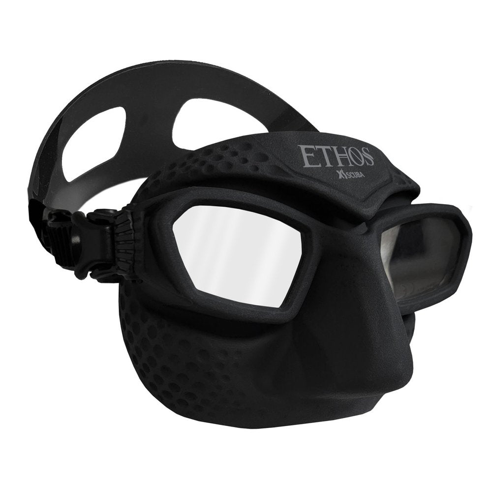 Internal orbital eye cups positioned on the diver's face keep the two lenses aligned on the same plane which prevents visual distortion and allows for an extremely low volume mask.