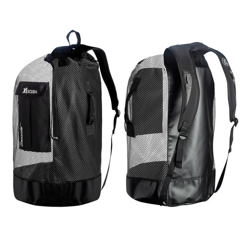 Tough polyester mesh with thick, tarpaulin bottom panel