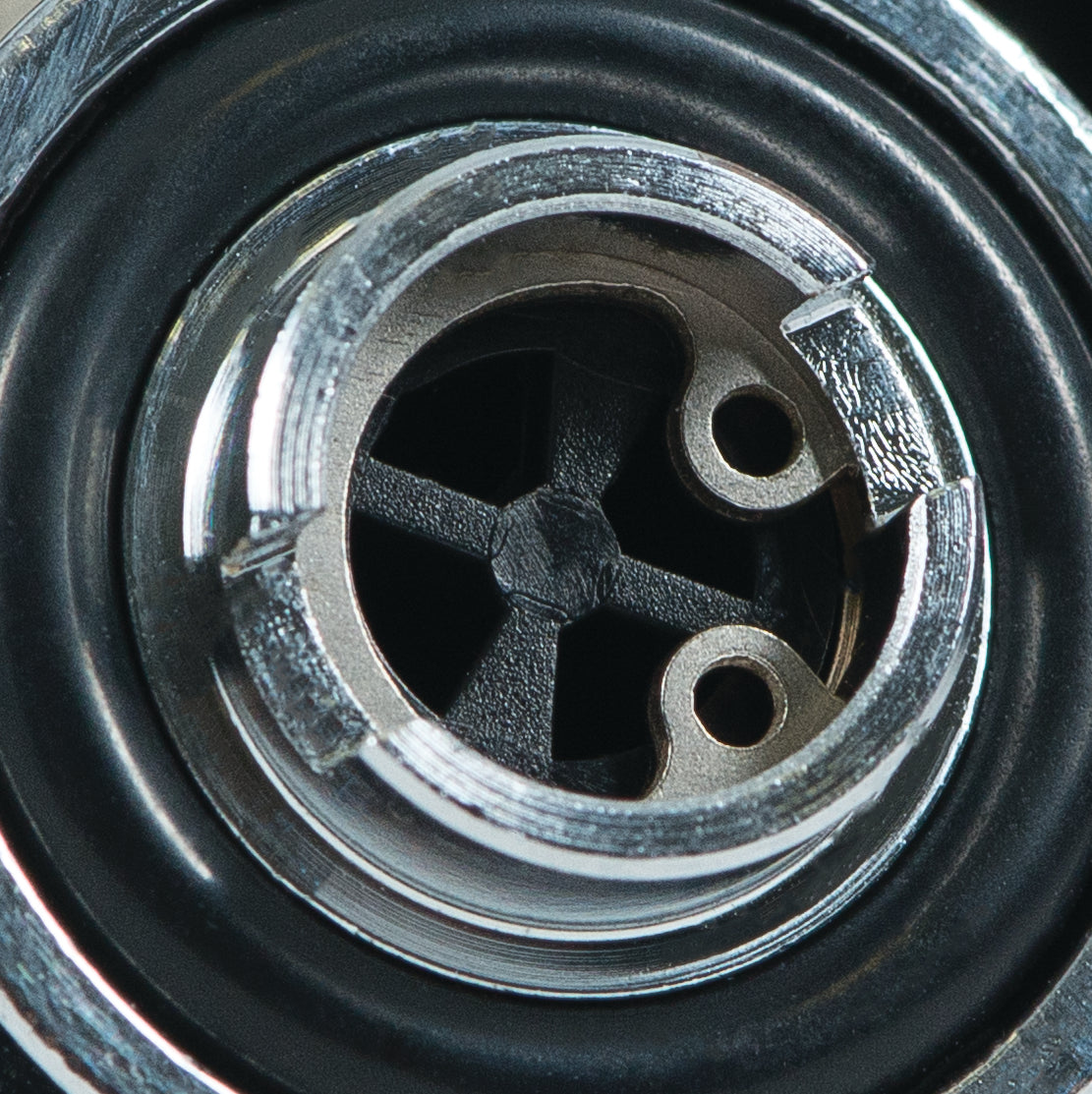 O.P.D. (Optimized Port Design): Another unique feature of this first stage is two pre-oriented high pressure (HP) ports, angled opposite each other. The first stage can be positioned with the rotating turret facing up or down for maximum freedom of choice.